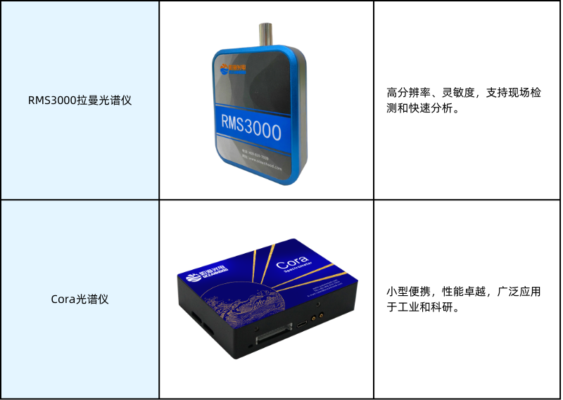 其中,RMS3000便攜式拉曼光譜儀憑借小巧便攜、高靈敏度的特點,廣泛應用于科學研究、生物醫學等領域。Cora微型光譜儀以其微型設計優勢亮相,及其適合手持Libs應用、UV-VIS吸光度、LED測量等多種應用場景。